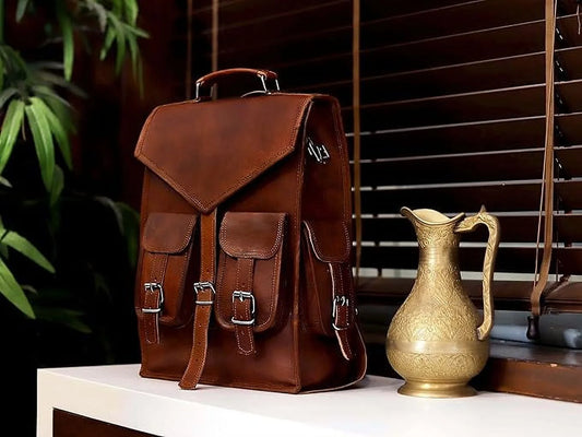 Vintage Leather Backpack Laptop Messenger Bag Rucksack Sling for Men Women, Brown, Size- 15"(H) X 5"(W) X 11"(L)