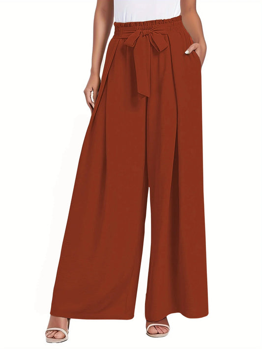 Womens Wide Leg Lounge Pants with Pockets High Waisted Adjustable Tie Knot Loose Casual Trousers Dress Work Pants