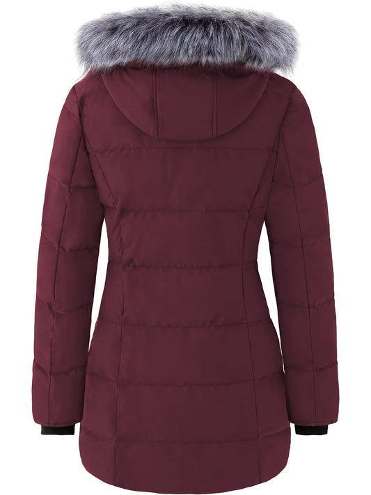 Women'S Puffy Jacket Warm Winter Coats Waterproof Parka Coat Wine Red S